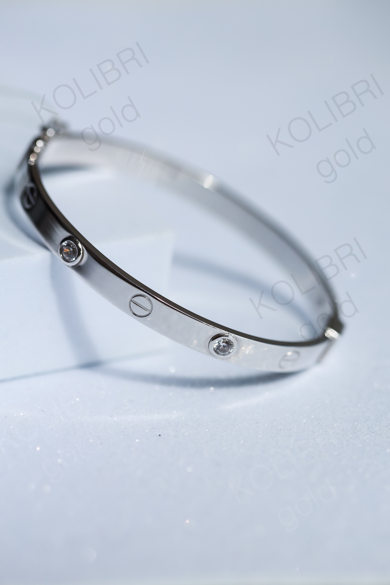 Жесткий браслет из белого золота с фианитом ДАРИНА 1б61003_1