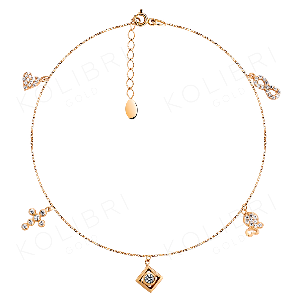 Золотой браслет на ногу с фианитом ДАРИНА 6н00027