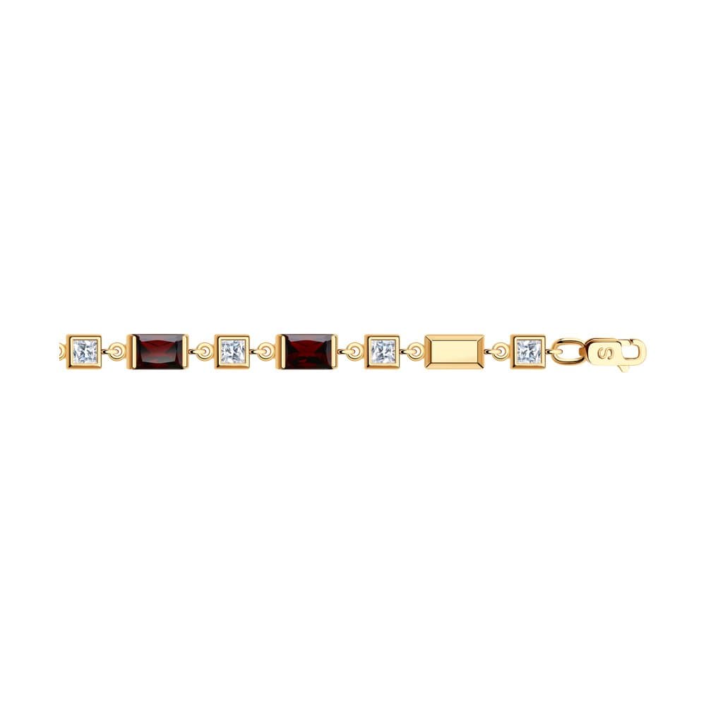 Золотой браслет с гранатом и кристаллом Swarocski SOKOLOV 750279