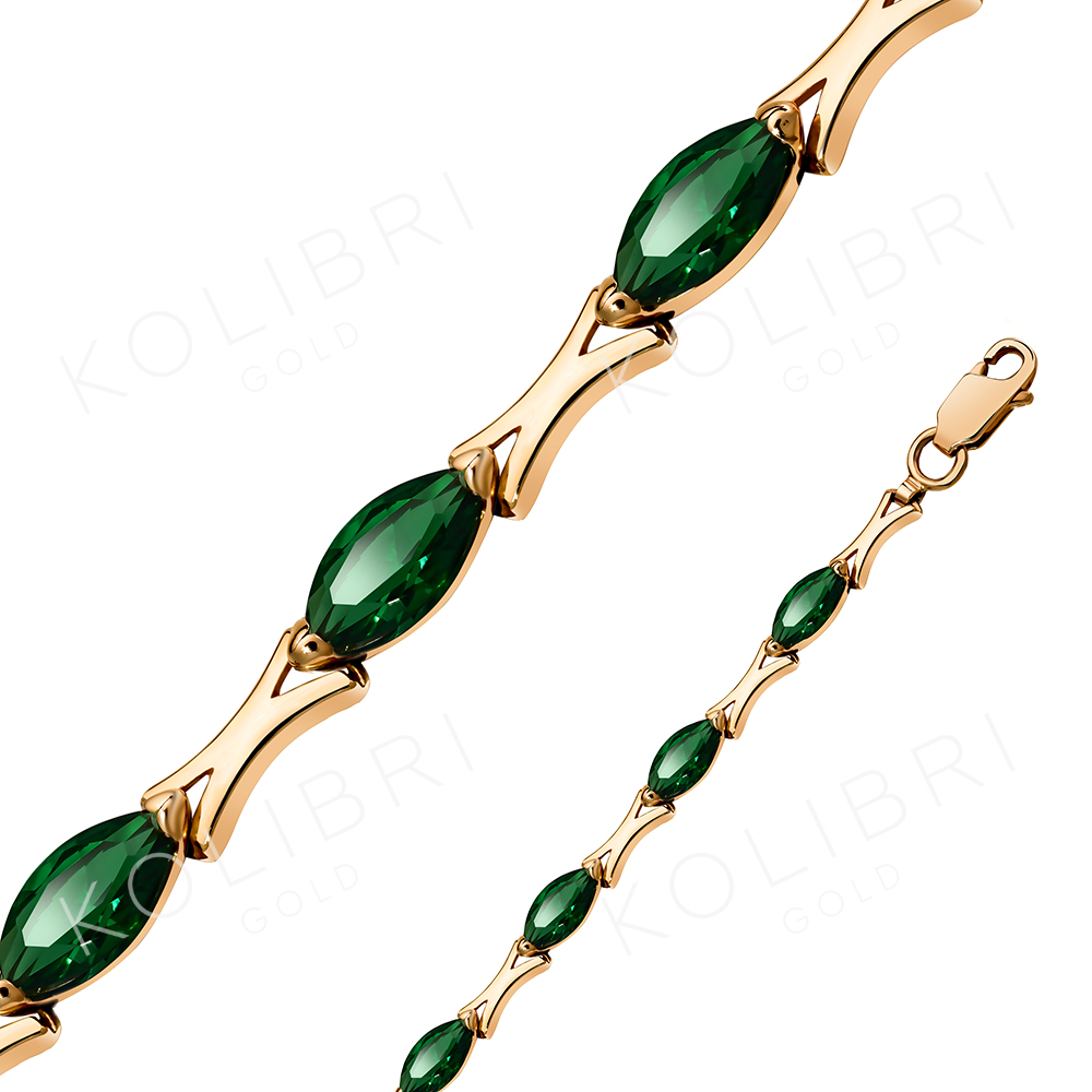 Золотой браслет с изумрудом гидротермальным ЗОЛОТОЙ КРИСТАЛЛ БР-113НИ