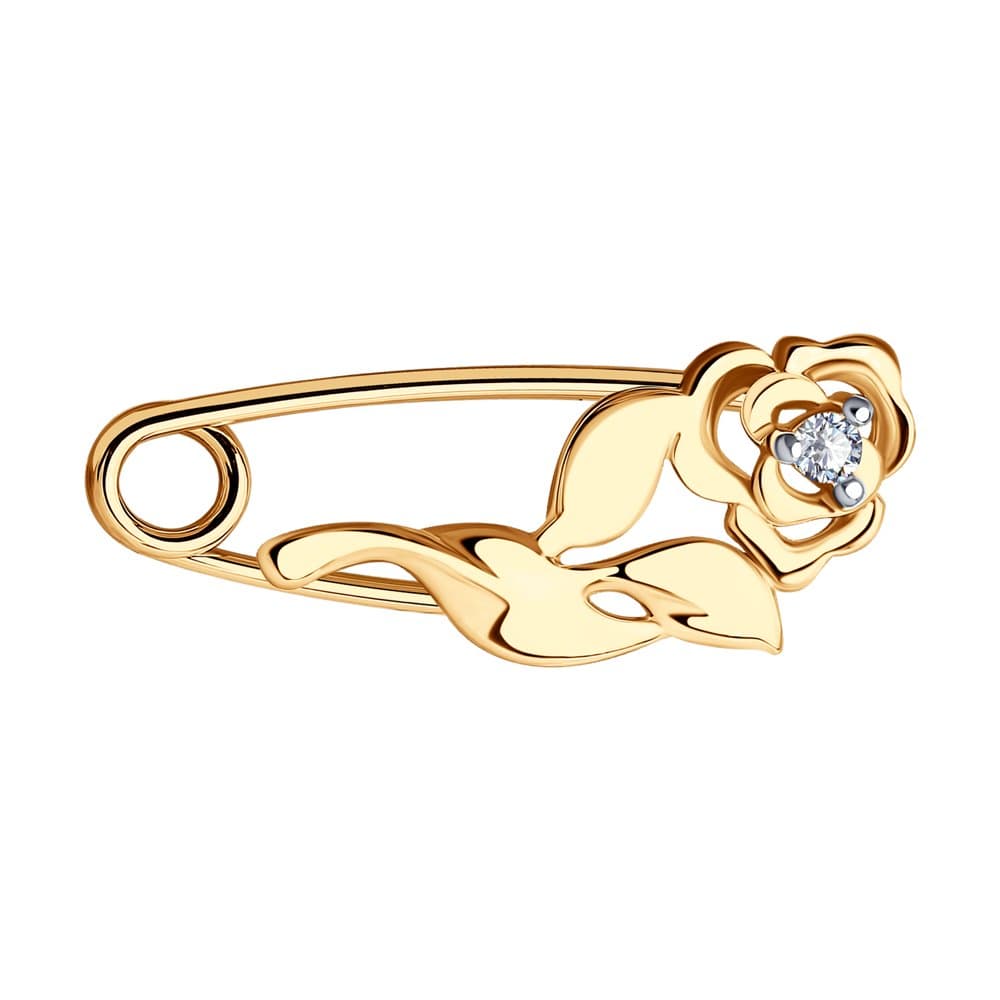 Золотая брошь булавка с фианитом SOKOLOV 040187