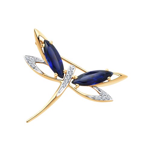 Золотая брошь с корундом и фианитом SOKOLOV 51-340-00762-1