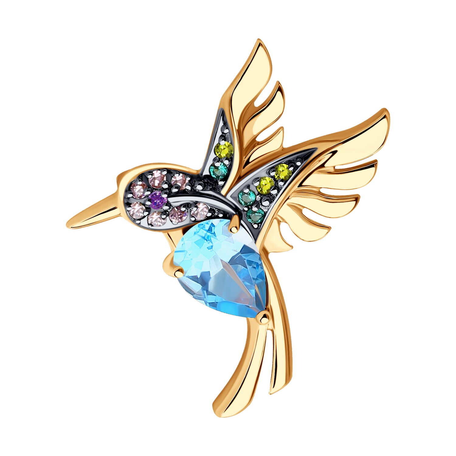 Золотая брошь с топазом и фианитом SOKOLOV 740388