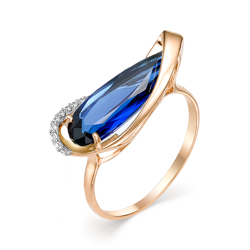 Золотое кольцо с сапфиром гидротермальным и фианитом МАСТЕР БРИЛЛИАНТ 01-1-626-15
