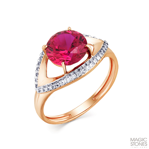 Золотое кольцо с рубиновым корундом и фианитом МАСТЕР БРИЛЛИАНТ 01-2-559-1601-011