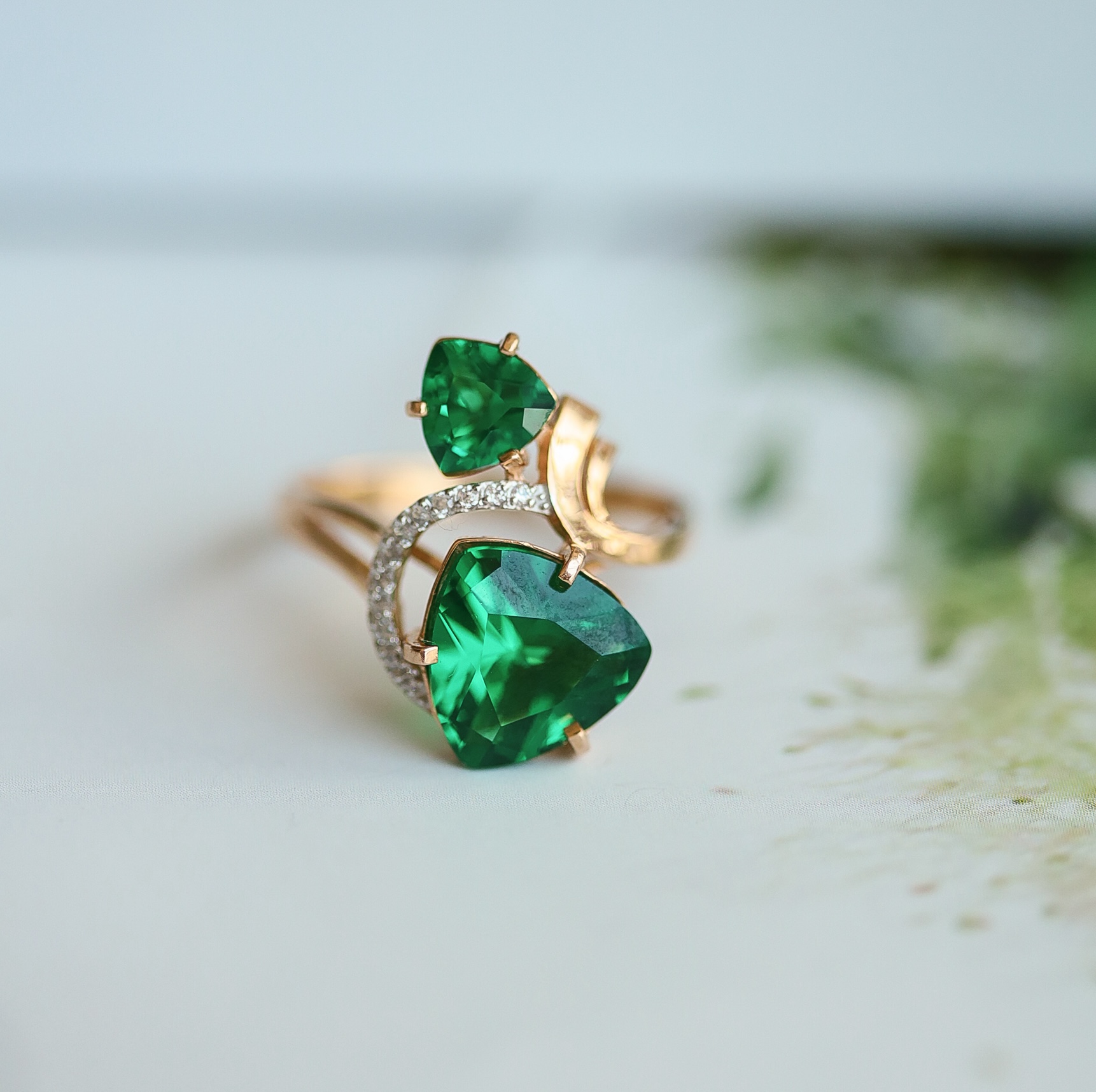 Золотое кольцо с изумрудом гидротермальным ПЛАТИНА 01-4207-00-207-