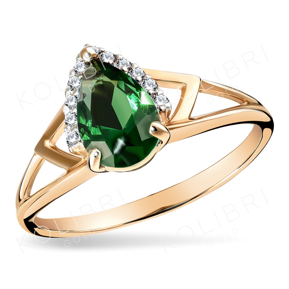 Золотое кольцо с изумрудом гидротермальным и фианитом БОЛЬШАКОВ 1-655и
