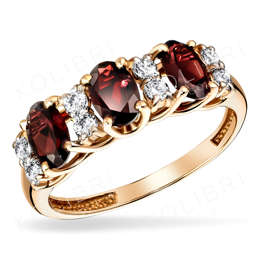 Золотое кольцо с гранатом и фианитом БОЛЬШАКОВ 1-668