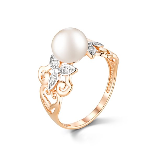 Золотое кольцо с жемчугом и фианитом DEFLEUR 21143A1