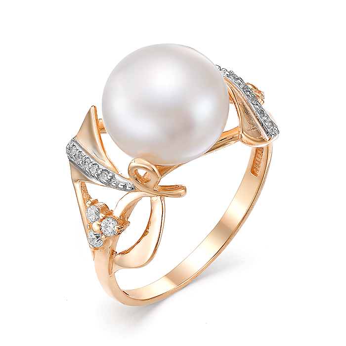 Золотое кольцо с жемчугом и фианитом DEFLEUR 21432A1
