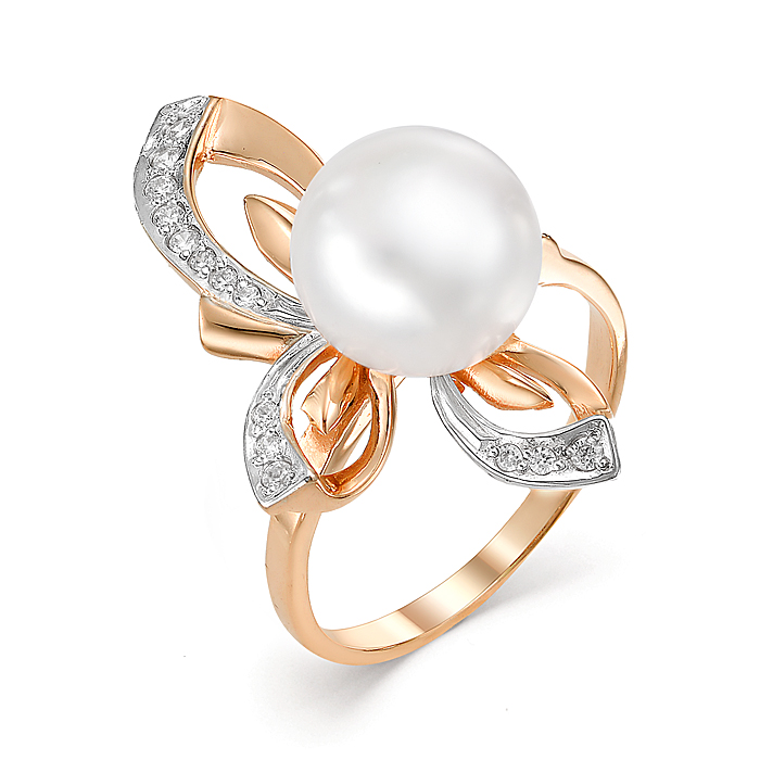 Золотое кольцо с жемчугом и фианитом DEFLEUR 31156A1