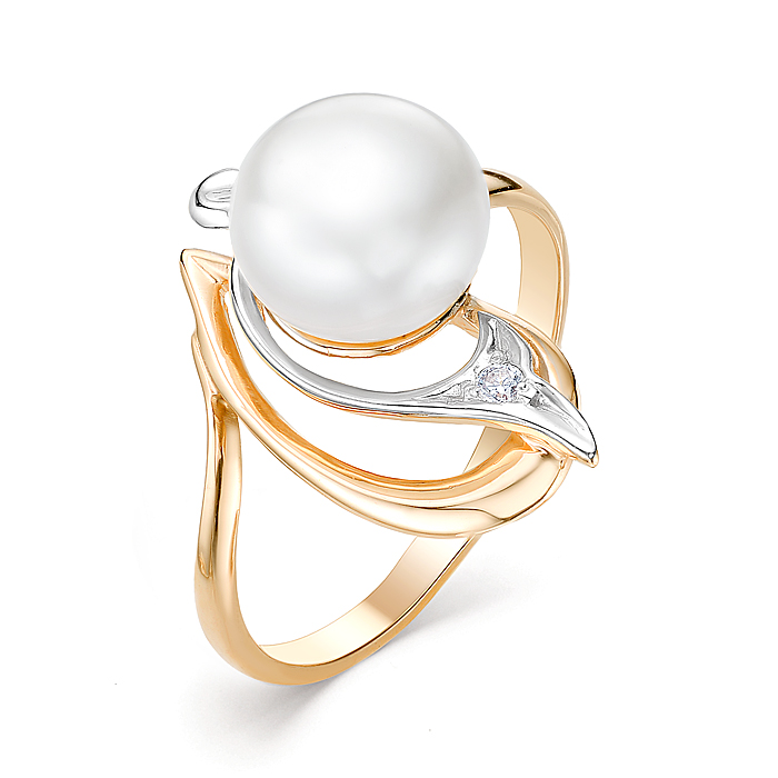 Золотое кольцо с жемчугом и фианитом DEFLEUR 31217A1