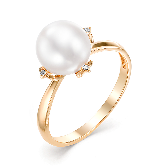 Золотое кольцо с жемчугом и фианитом DEFLEUR 31349A1