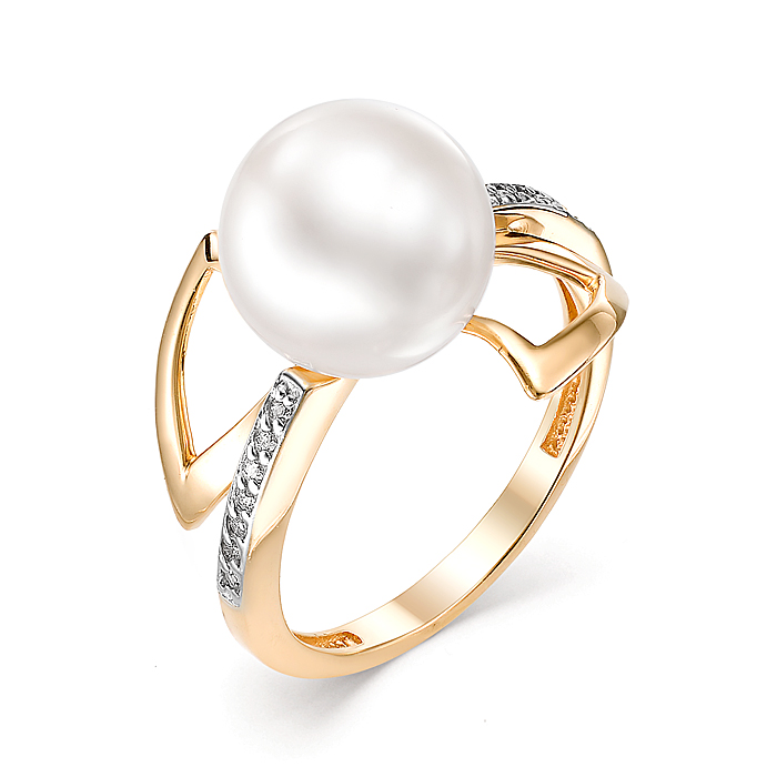 Золотое кольцо с жемчугом и фианитом DEFLEUR 31383A1