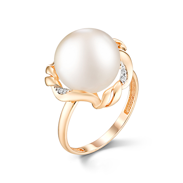 Золотое кольцо с жемчугом и фианитом DEFLEUR 31395A1