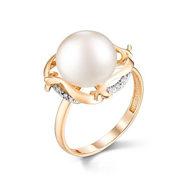 Золотое кольцо с жемчугом и фианитом DEFLEUR 31396A1