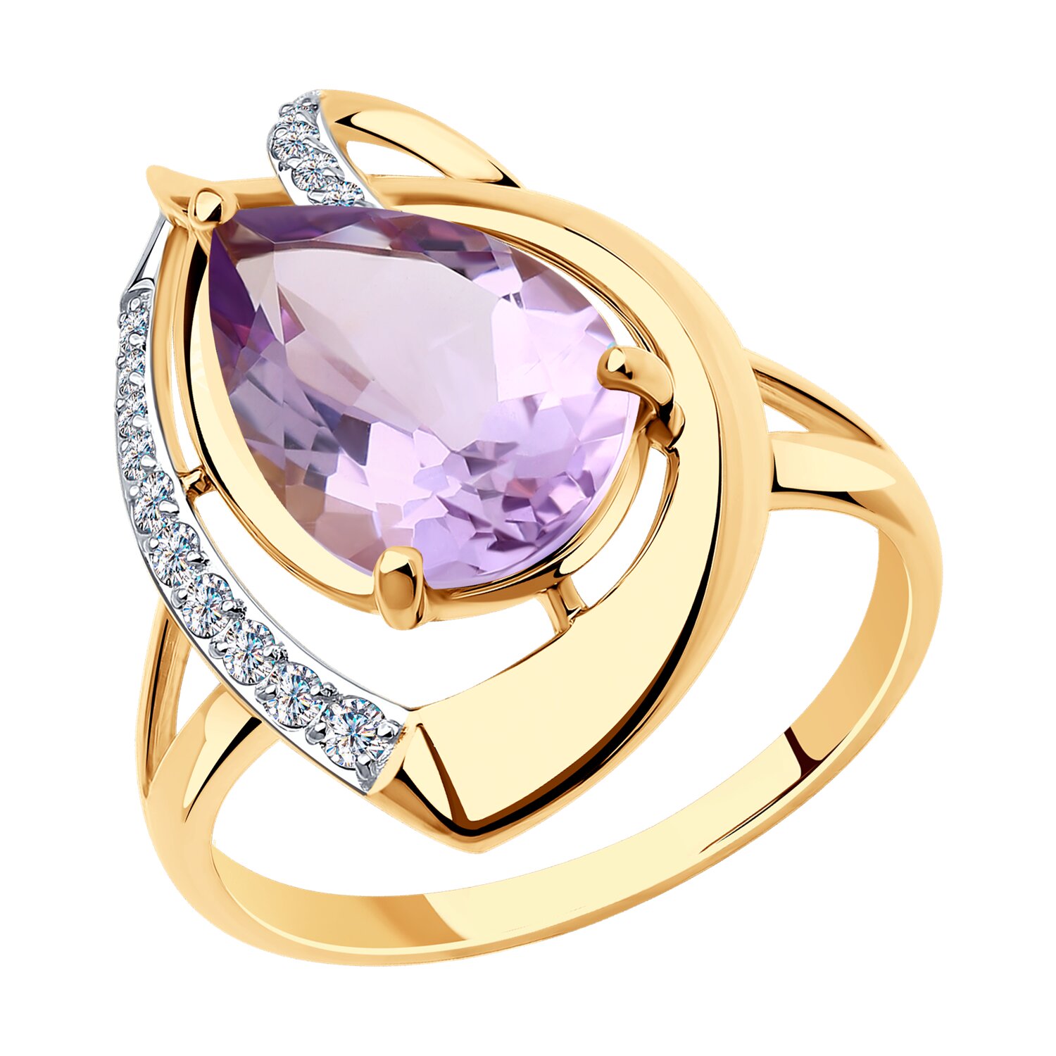 Золотое кольцо с аметистом и фианитом SOKOLOV 51-310-00931-2