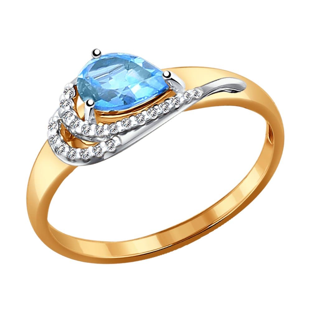 Золотое кольцо с топазом и фианитом SOKOLOV 714074