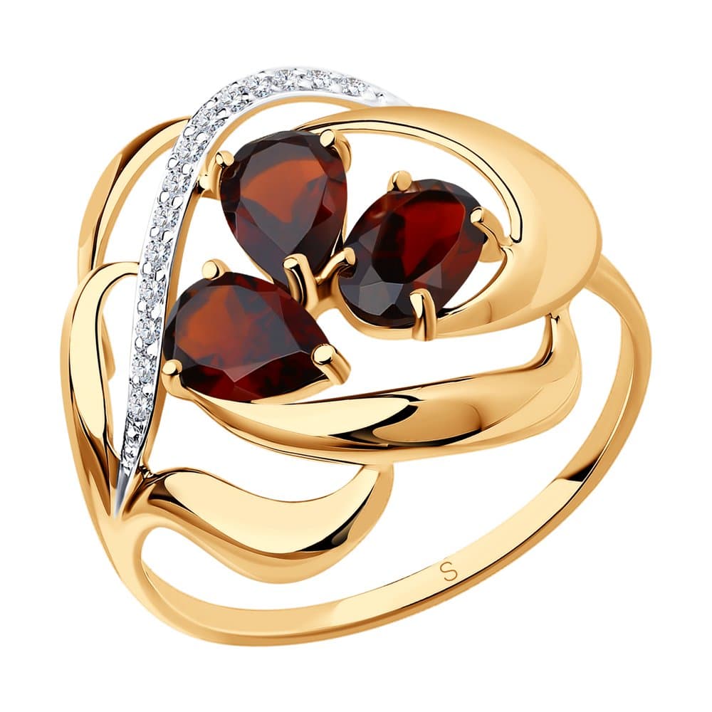 Золотое кольцо с гранатом и фианитом SOKOLOV 714732