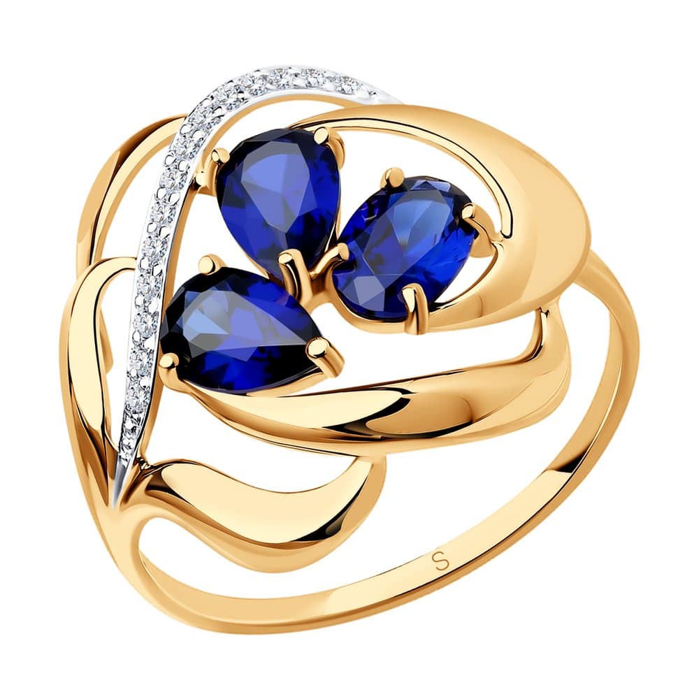 Золотое кольцо с сапфиром гидротермальным и фианитом SOKOLOV 714733