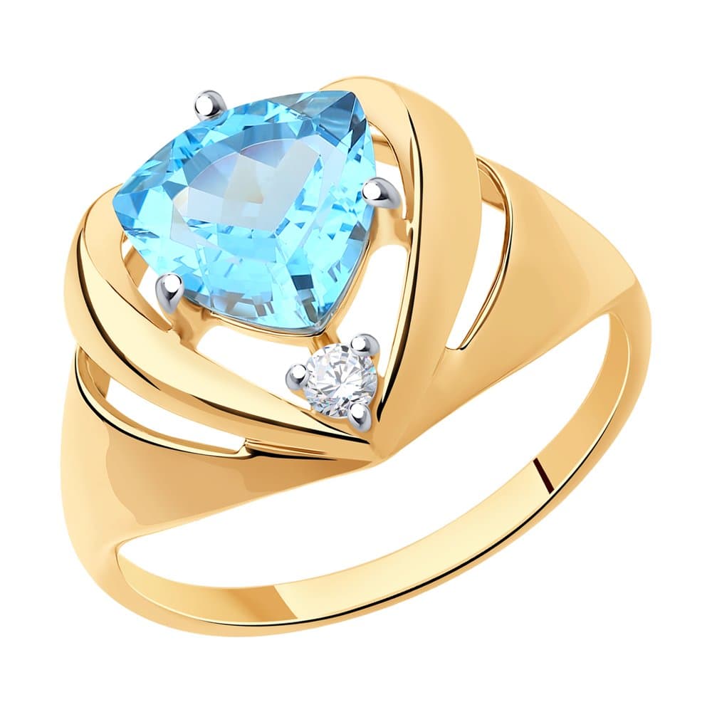 Золотое кольцо с топазом и фианитом SOKOLOV 714827