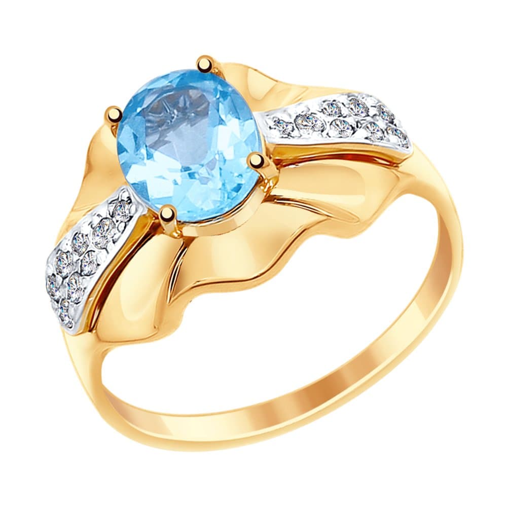 Золотое кольцо с топазом и фианитом SOKOLOV 714849