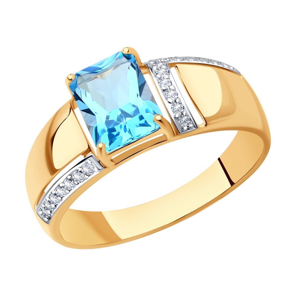 Золотое кольцо с топазом и фианитом SOKOLOV 714856