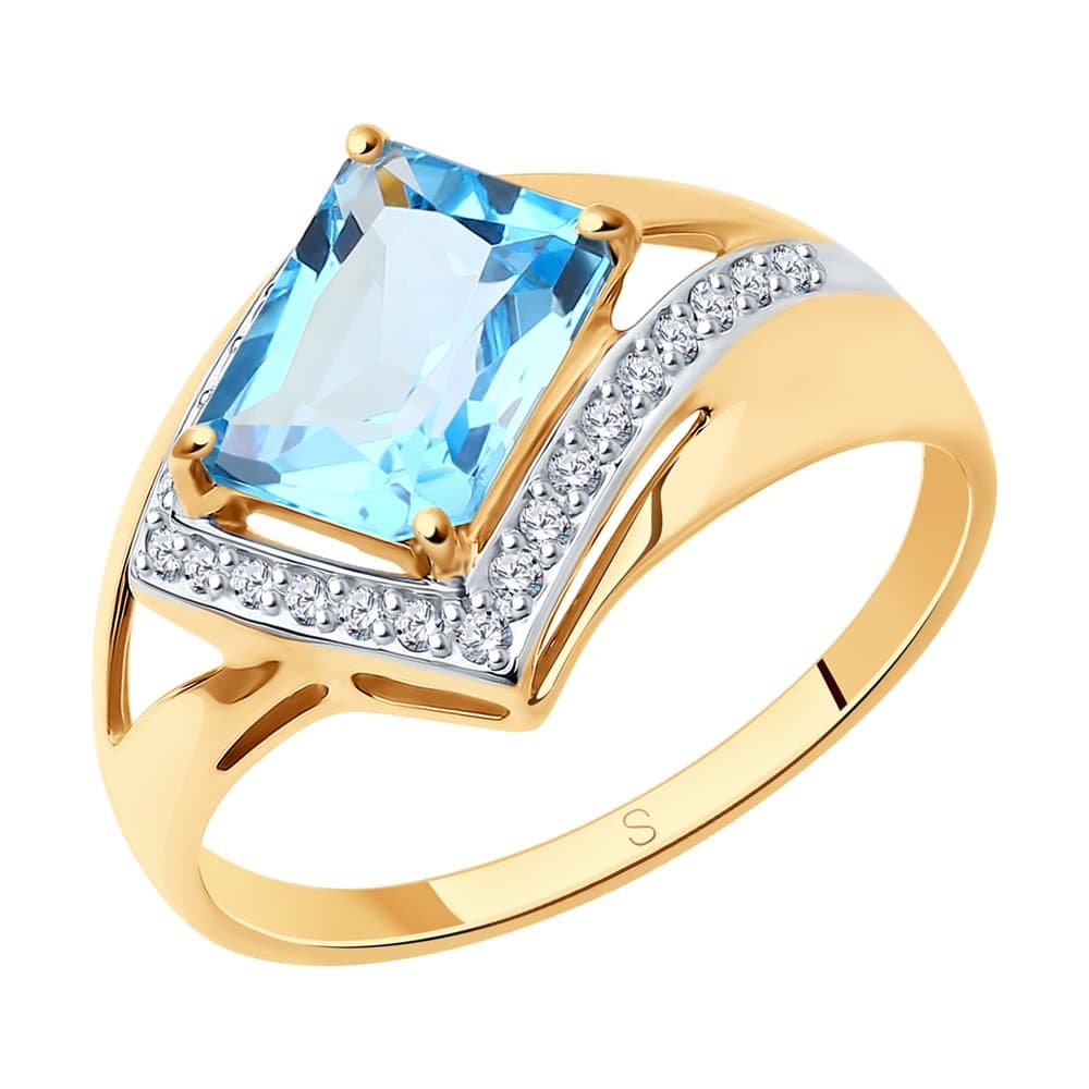 Золотое кольцо с топазом и фианитом SOKOLOV 715282