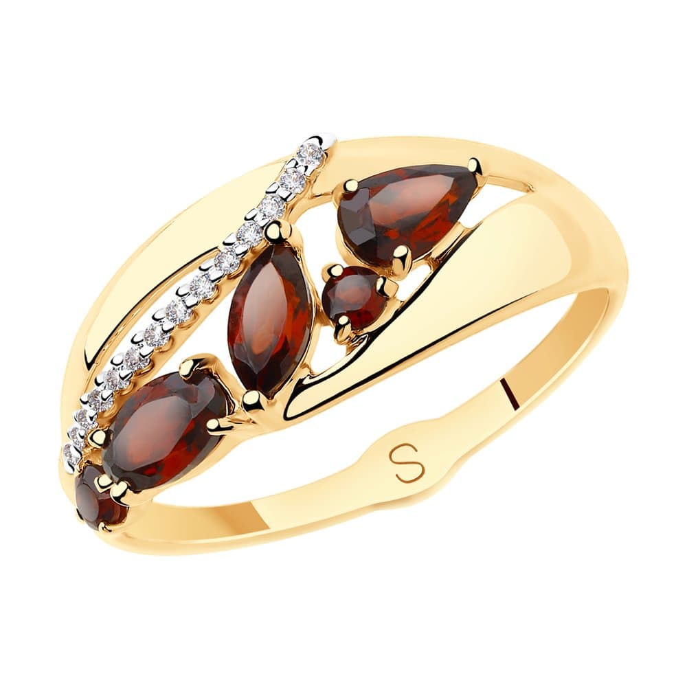 Золотое кольцо с гранатом и фианитом SOKOLOV 715573