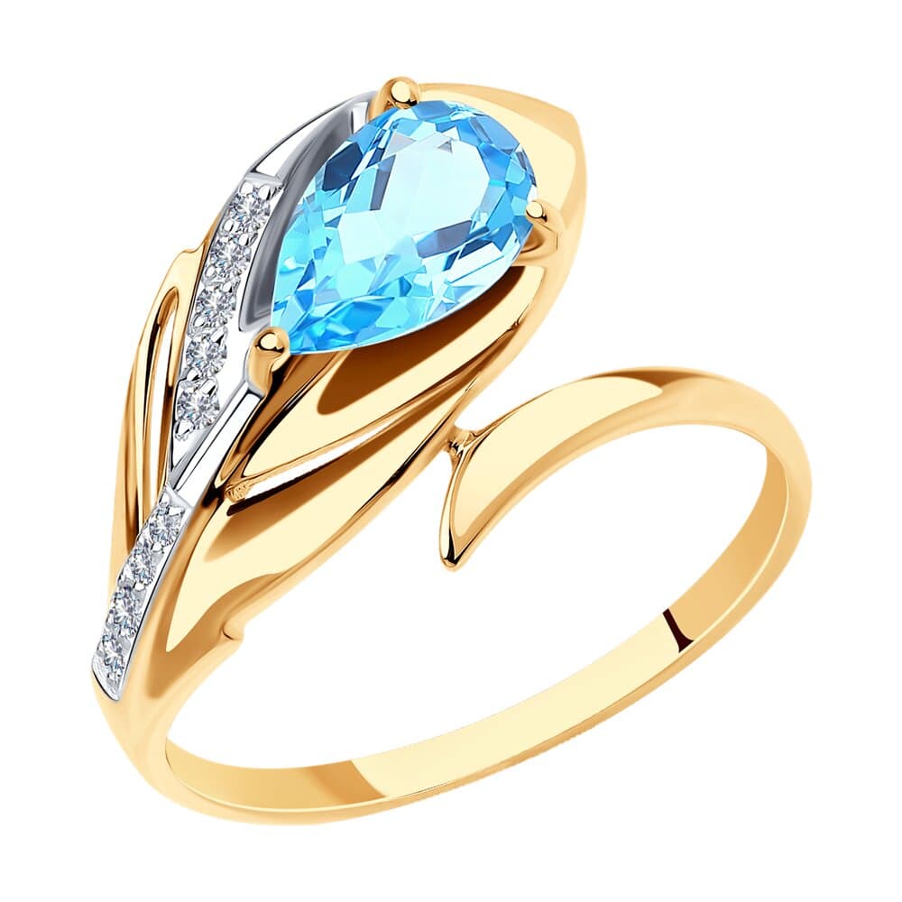 Золотое кольцо с топазом и фианитом SOKOLOV 715862
