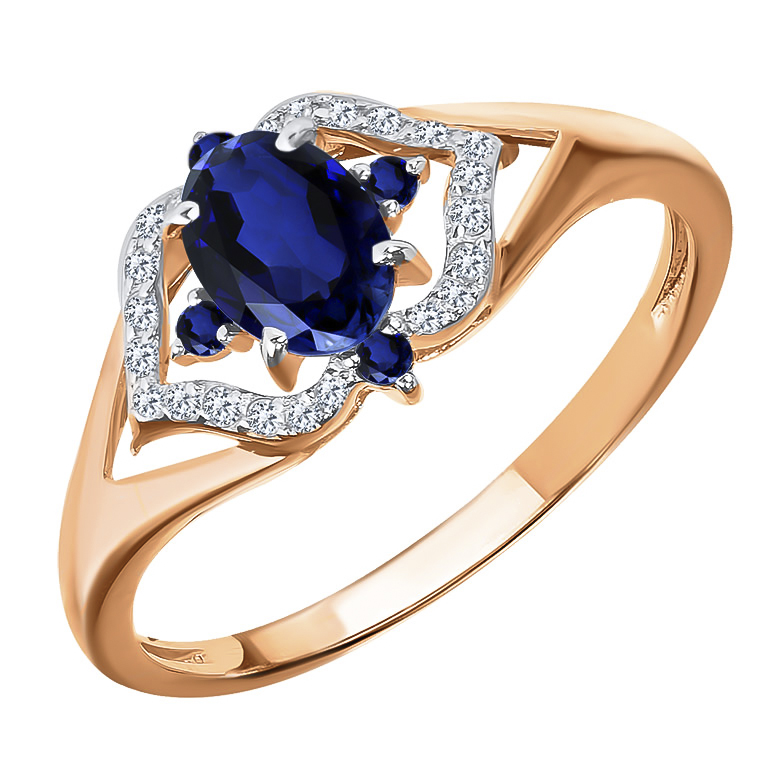 Золотое кольцо с бриллиантом и сапфиром гидротермальным ЕФРЕМОВ К1385908