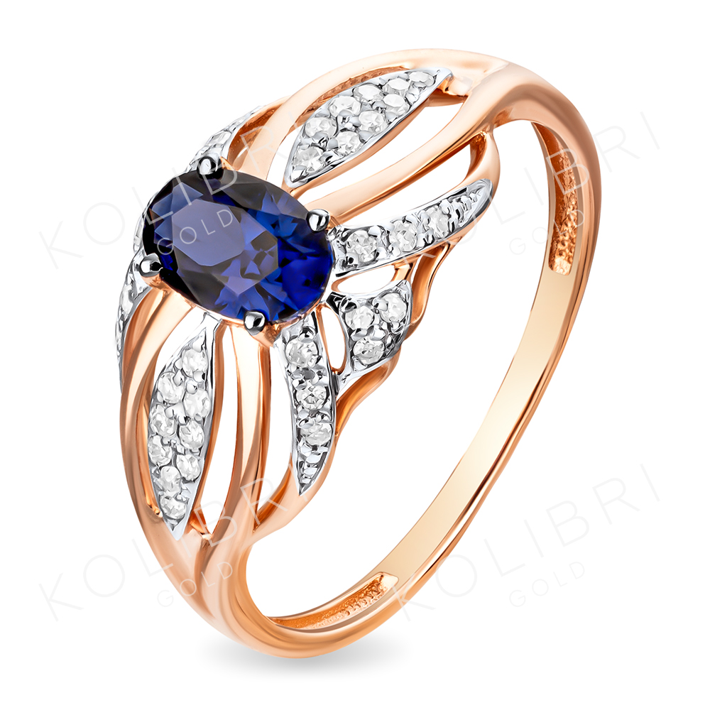 Золотое кольцо с бриллиантом и сапфиром гидротермальным ЕФРЕМОВ К1388003с
