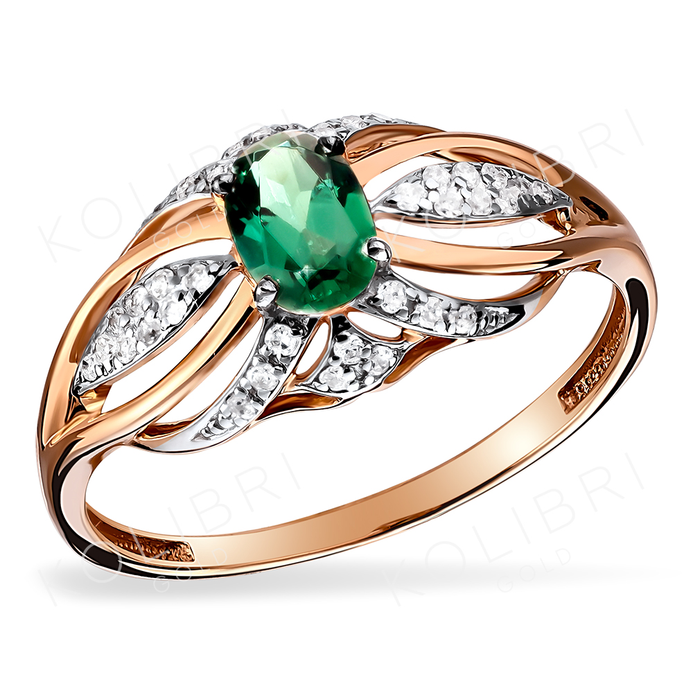 Золотое кольцо с бриллиантом и изумрудом гидротермальным ЕФРЕМОВ К1388003и
