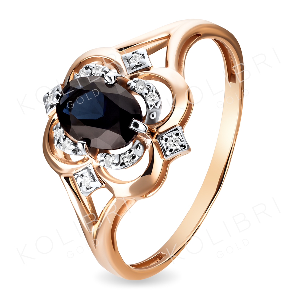 Золотое кольцо с бриллиантом и сапфиром гидротермальным ЕФРЕМОВ К1388341с