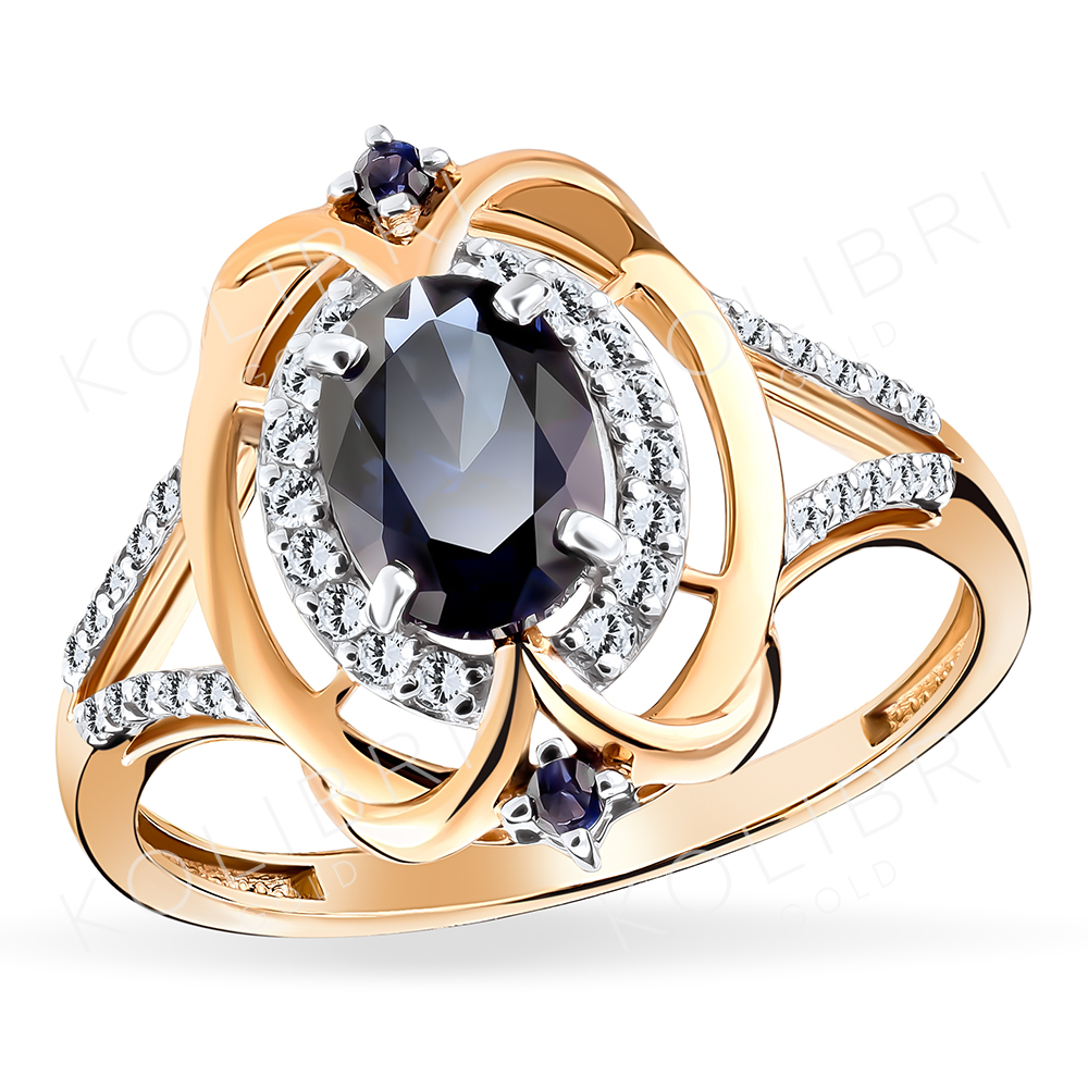 Золотое кольцо с бриллиантом и сапфиром гидротермальным ЕФРЕМОВ К1388344