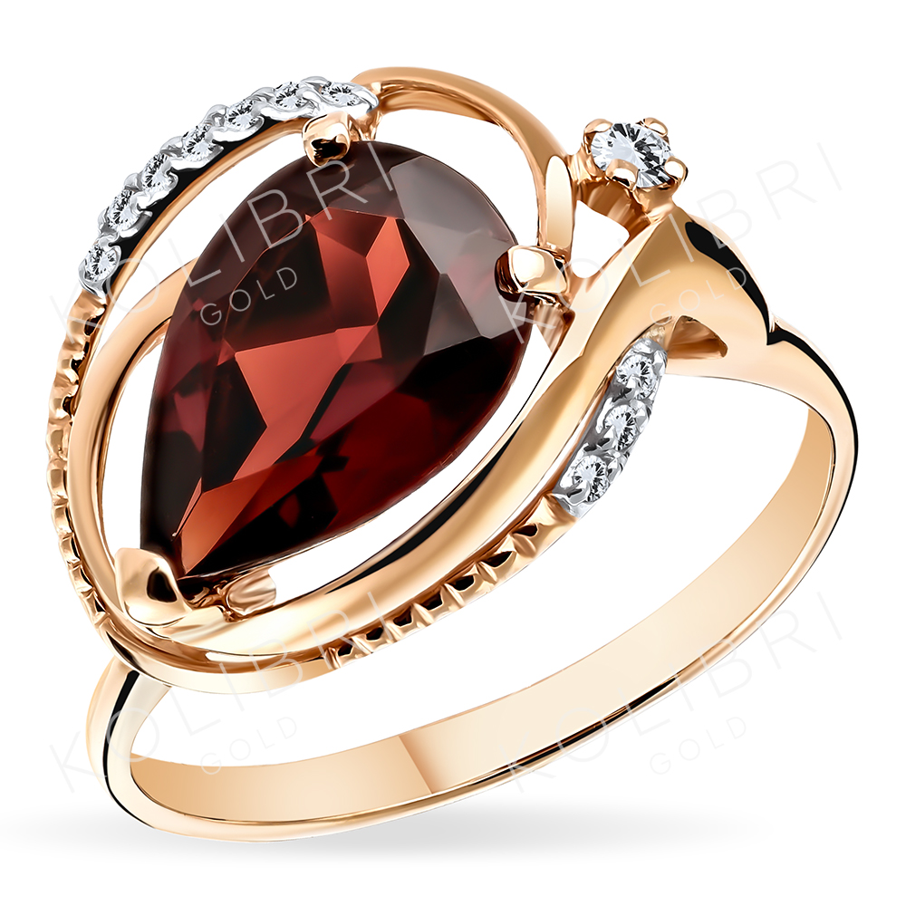 Золотое кольцо с гранатом и фианитом ЗОЛОТОЙ КРИСТАЛЛ К-868_НГ