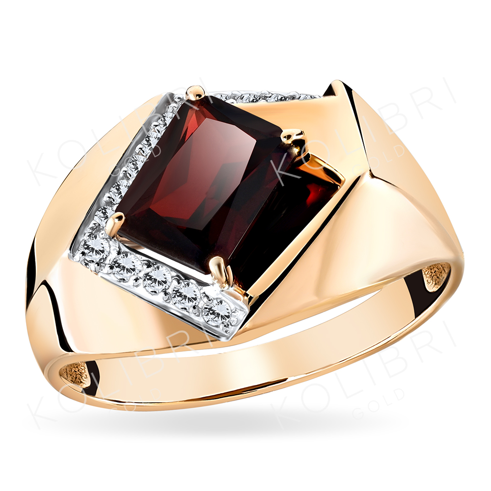 Золотое кольцо с гранатом и фианитом АЛЕКСАНДРА кл2970-2-01