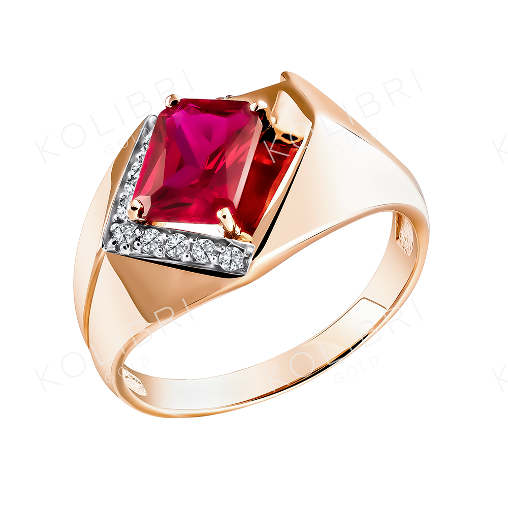 Золотое кольцо с рубиновым корундом и фианитом АЛЕКСАНДРА кл2970-30-01