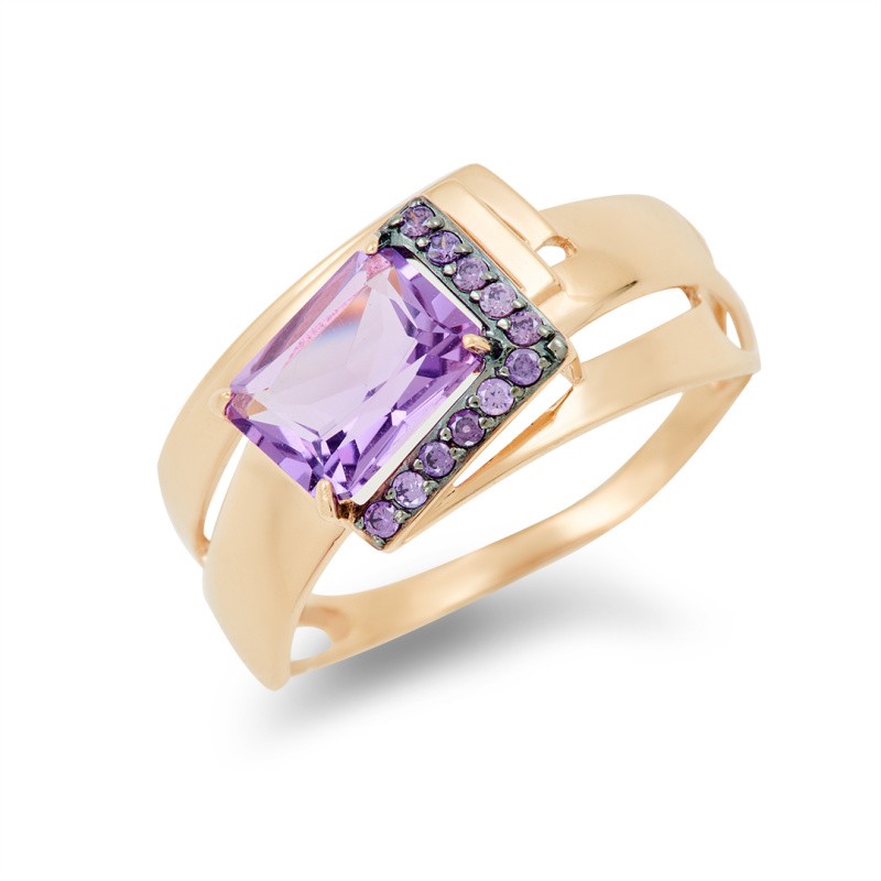 Золотое кольцо с аметистом АЛЕКСАНДРА кл3624-3