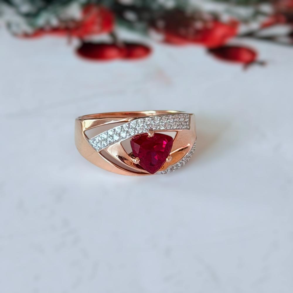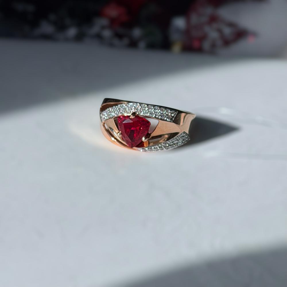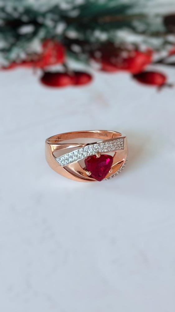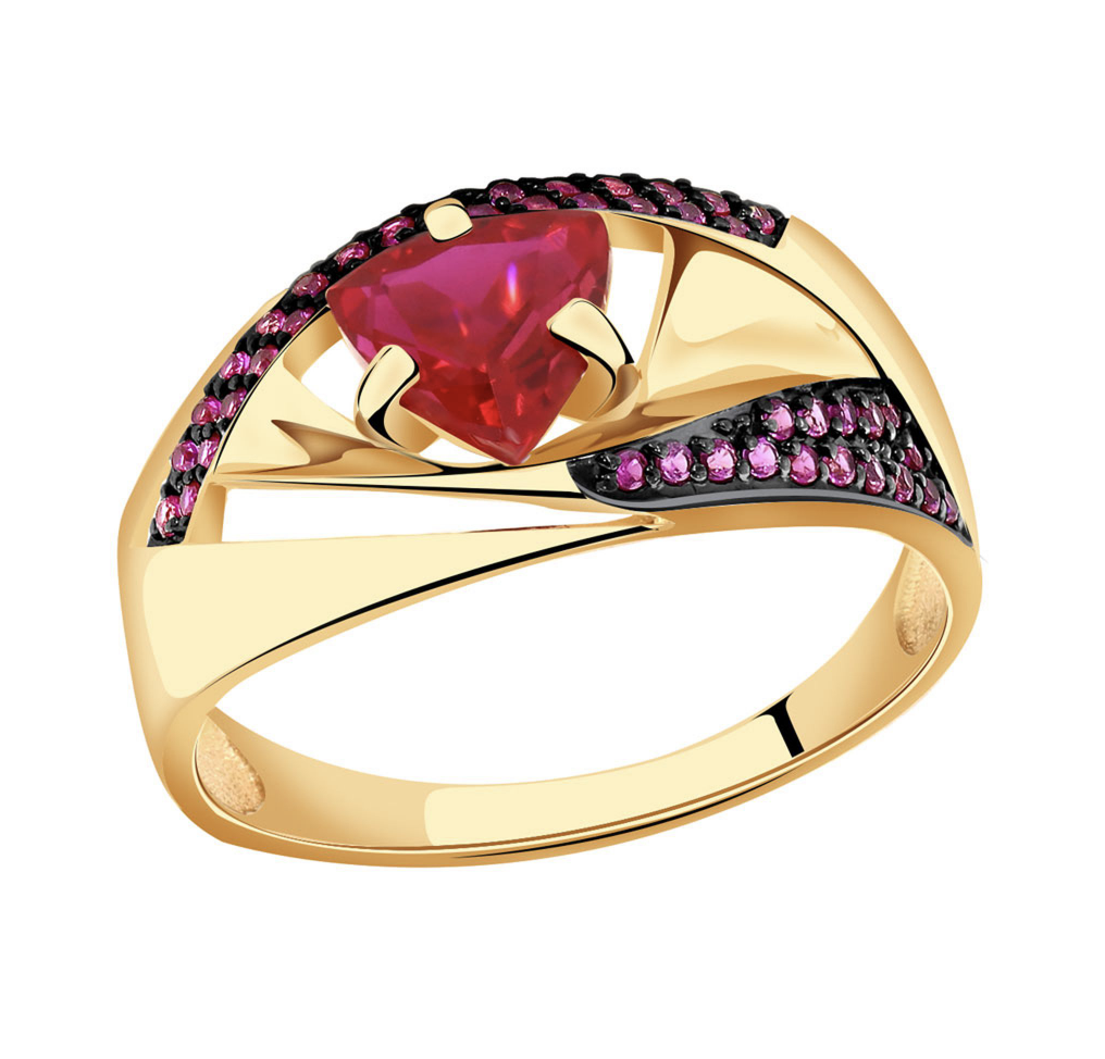 Золотое кольцо с рубином гидротермальным и фианитом АЛЕКСАНДРА кл3744-30-01