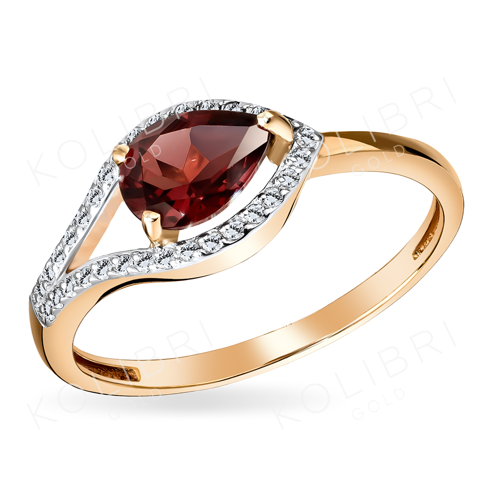 Золотое кольцо с гранатом и фианитом МАГИЯ ЗОЛОТА КЛ-514К-Г