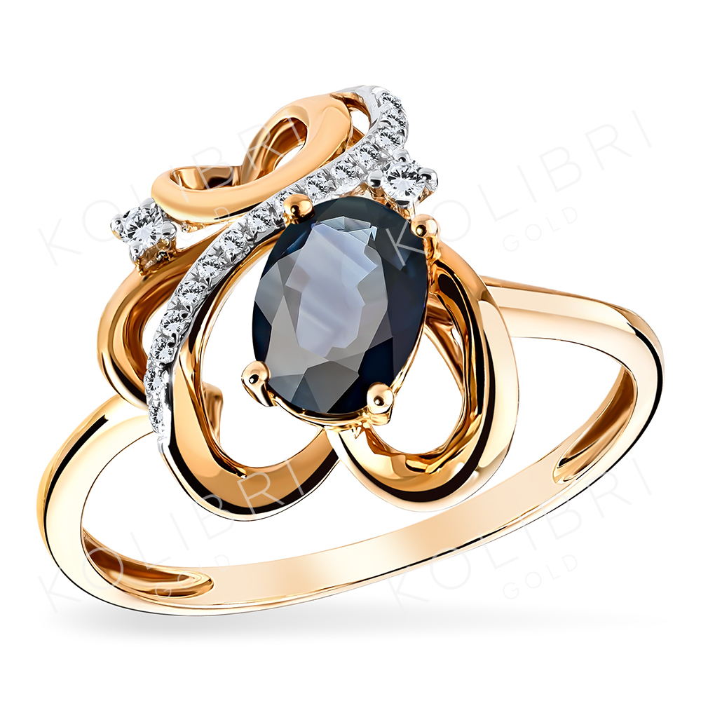 Золотое кольцо с бриллиантом и сапфиром ВЫСТАВКА R424-D-47032S