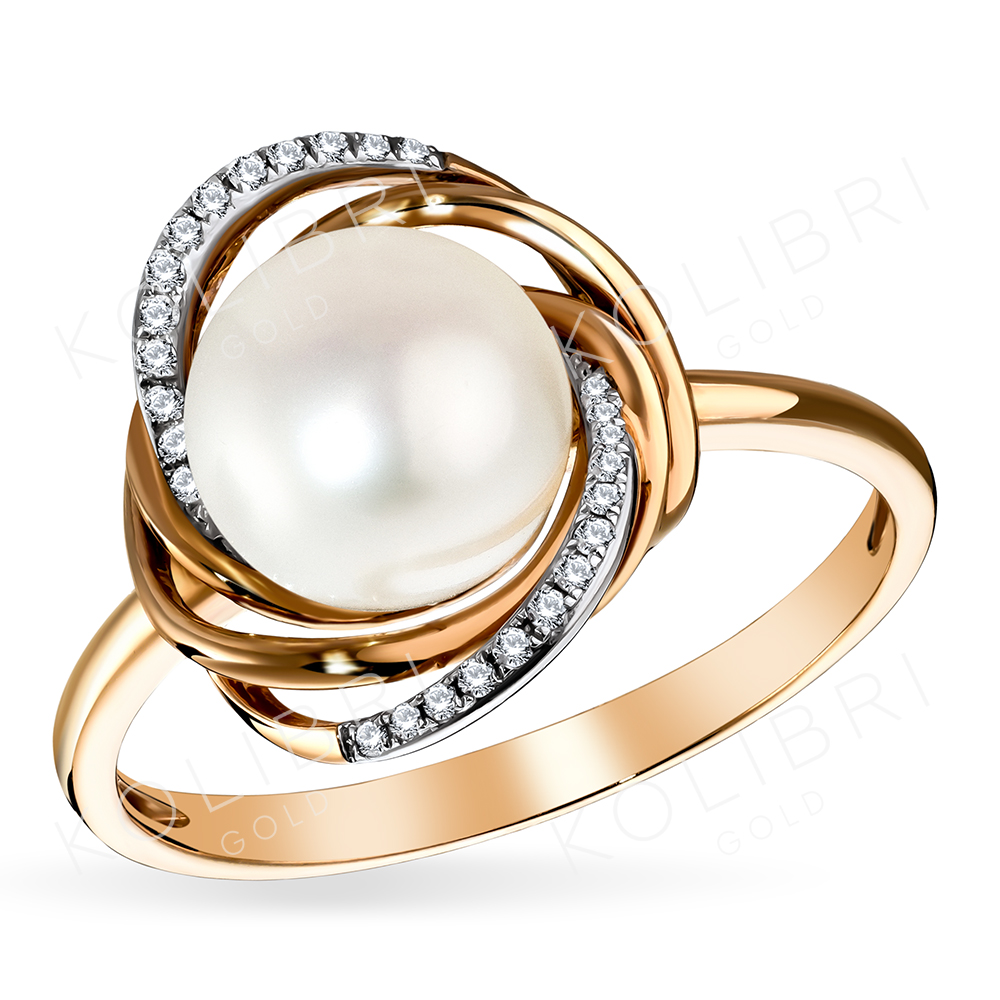 Золотое кольцо с бриллиантом и жемчугом ВЫСТАВКА R471-D-14152WPR
