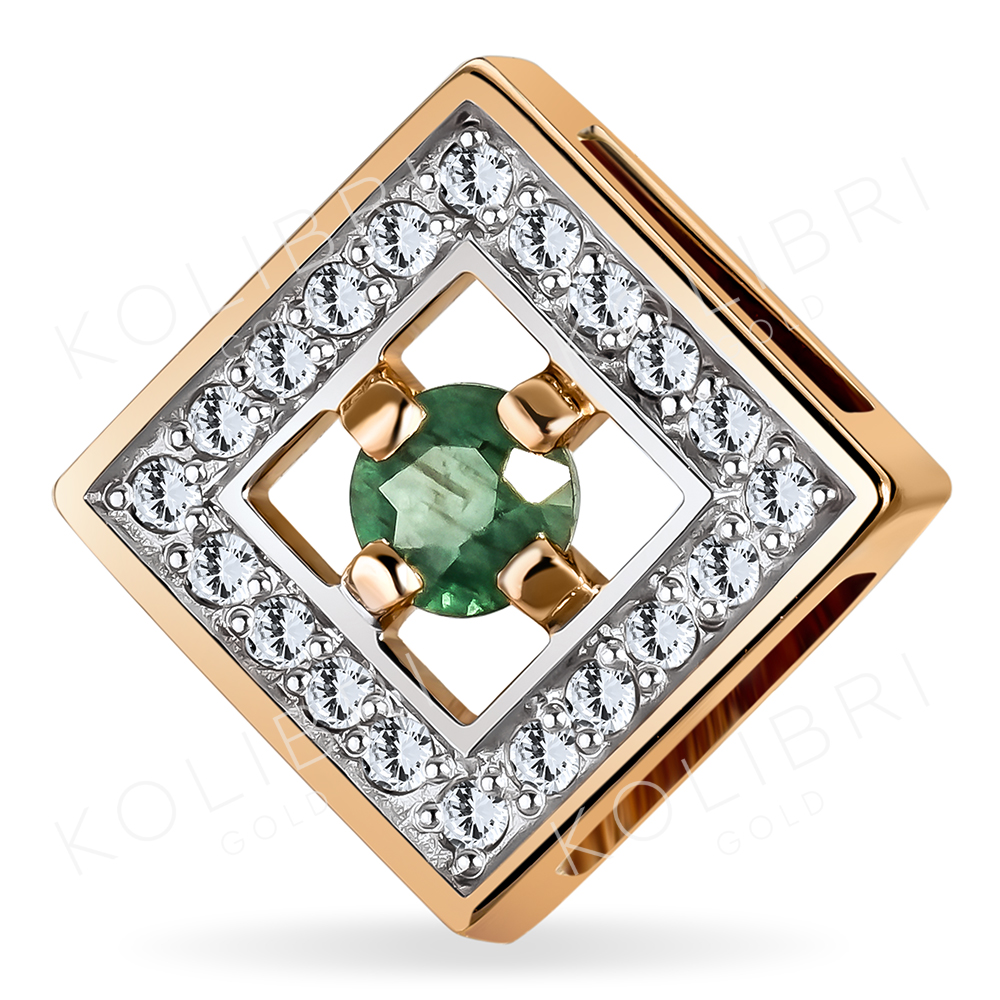 Золотая подвеска с изумрудом гидротермальным и изумрудом BRILLIANT STYLE 251-311