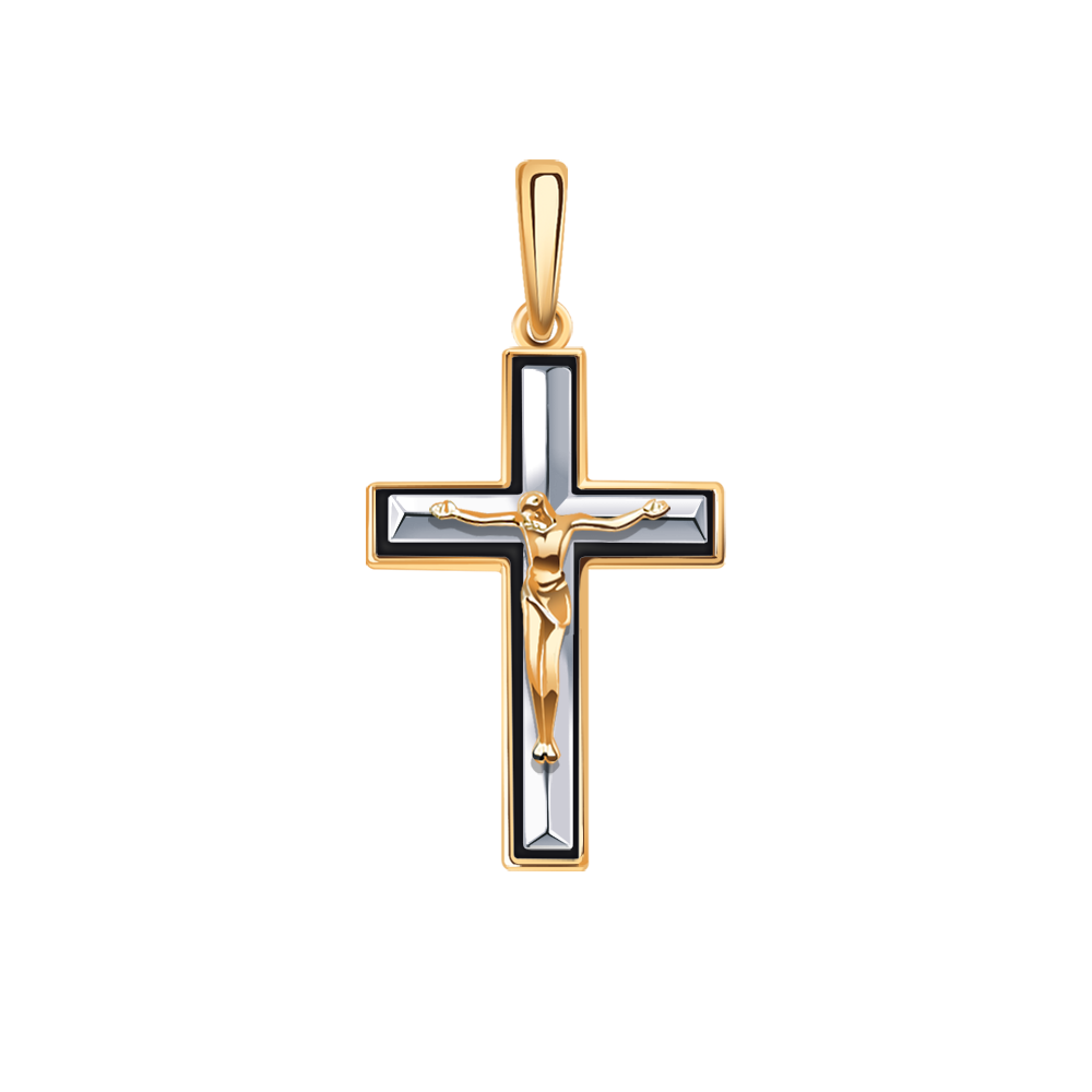 Золотая подвеска крест с эмалью АТОЛЛ 3302э