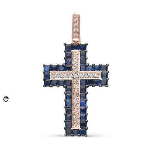Золотая подвеска крест с сапфиром гидротермальным и сапфиром МАСТЕР БРИЛЛИАНТ 8-248-02