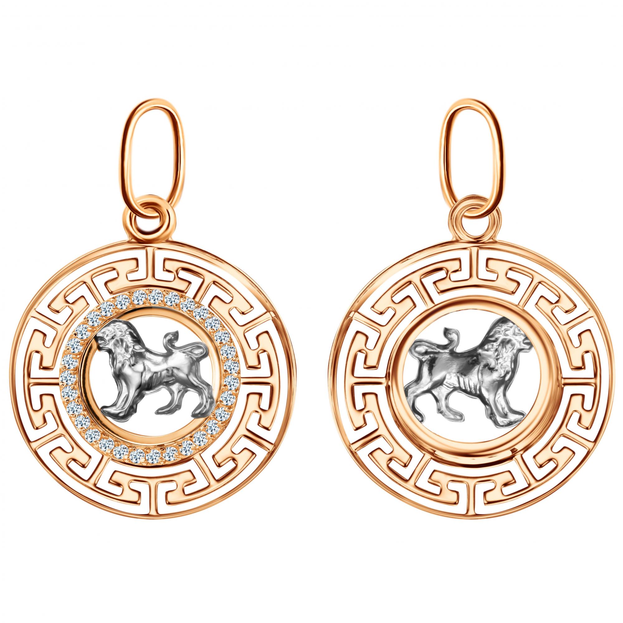 Золотая подвеска знак зодиака с фианитом ГОЛДЕН ГЛОБ КрСВП_лев_Ф