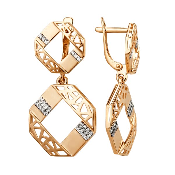 Золотые длинные серьги с фианитом ДИНАСТИЯ 005272-1102