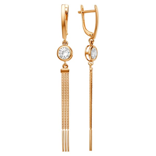 Золотые длинные серьги с фианитом ДИНАСТИЯ 006802-1100