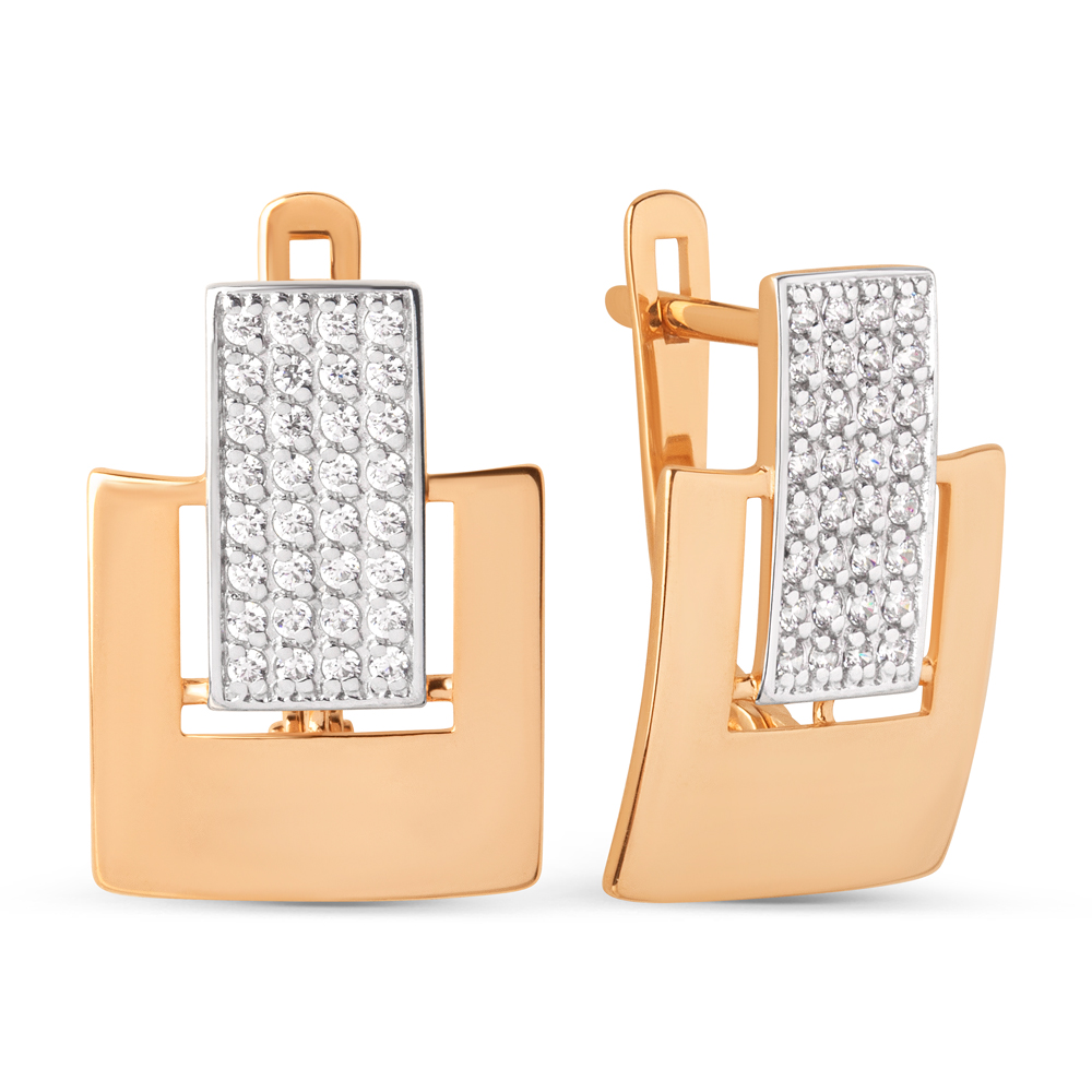 Золотые серьги с фианитом ДИНАСТИЯ 016972-1102